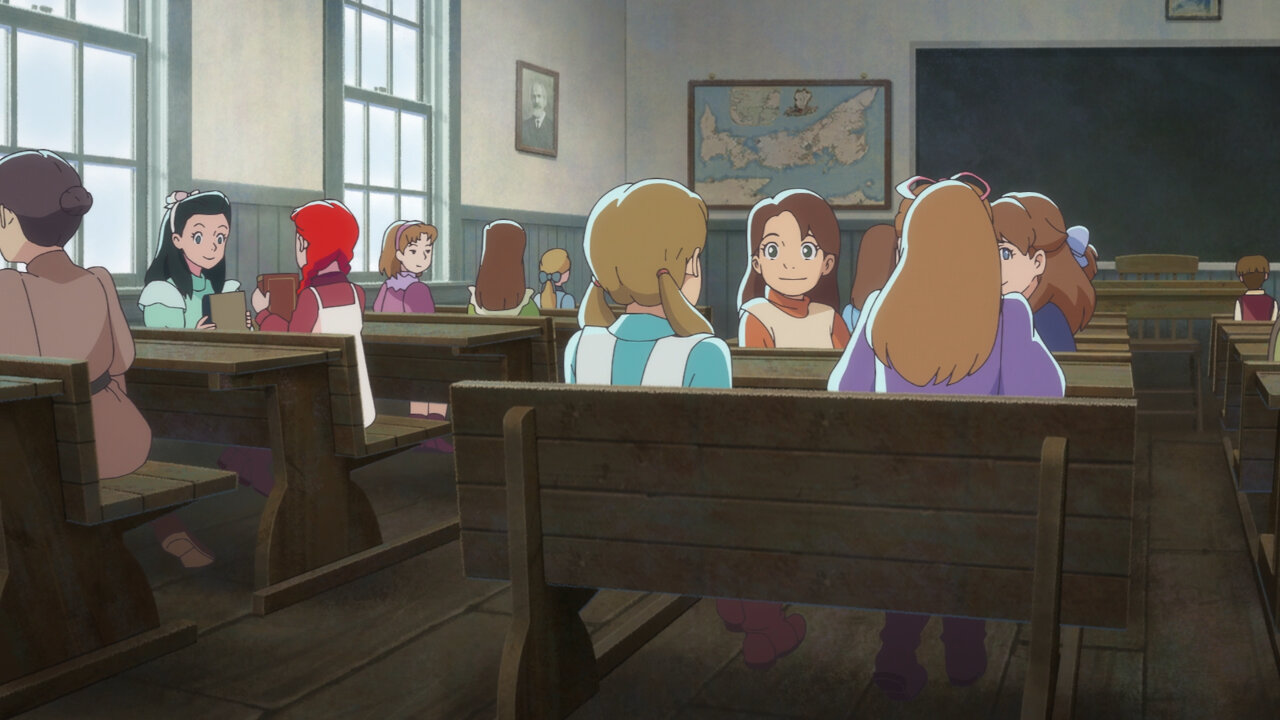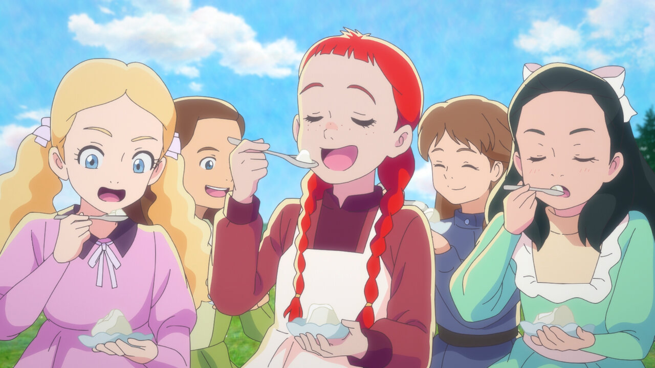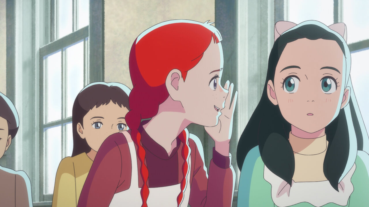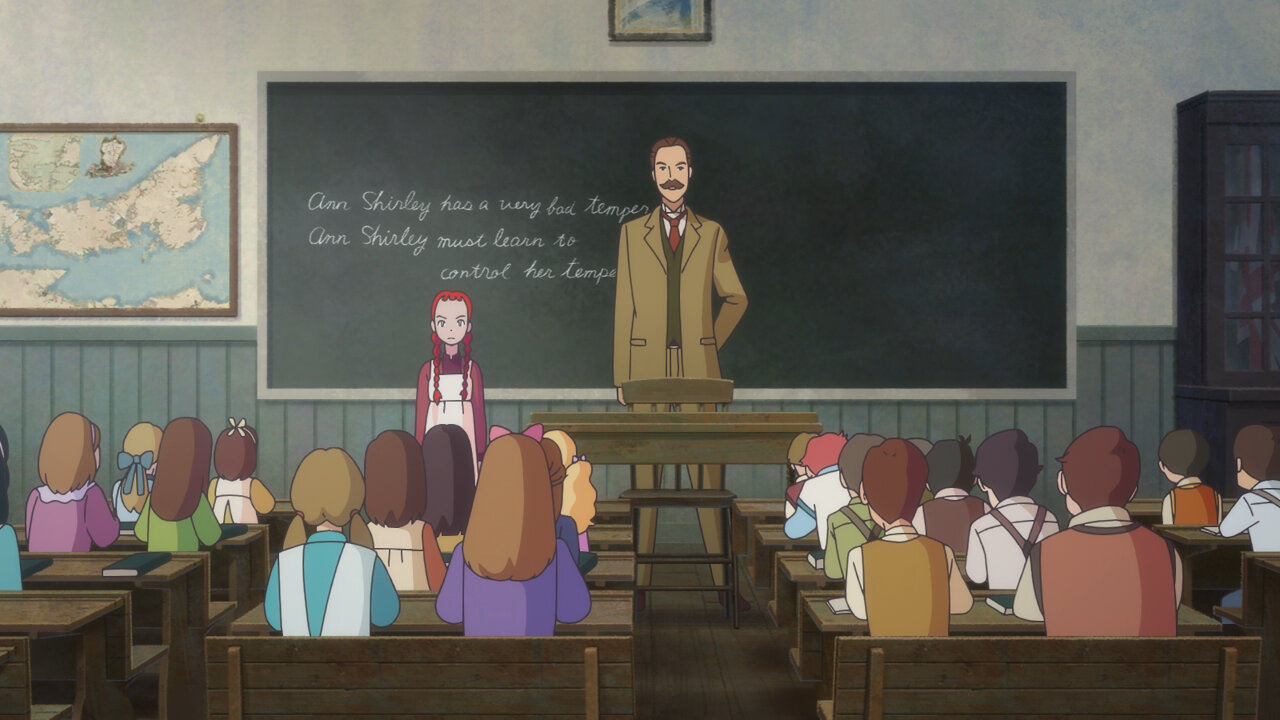 It must be ice cream week in anime. I found it funny that after yesterday’s Kusuriya no Hitorigoto featured ice cream, Anne gets her first taste of the frozen treat this week too. Anne has her red letter day at the picnic and makes new friends- not much to note here. The most important part of the episode comes last, when Anne starts school. She enjoys it at first- what’s not to love about it- friends, learning new things, getting out of the house. I was worried when they added in the scene with the girls giggling over lunch by the river- dancing awfully close to the “CGDCT” line- which was not at all the spirit of the book. Thankfully, it moved away from that, but it still gives me a small cause for concern in the future. Anne makes a splash, in a good way for the first time. While she’s behind a grade (not surprising given the scattered upbringing she’s had) she’s clearly a bright little girl, excelling in academics. She quickly makes it to the head of her class.
