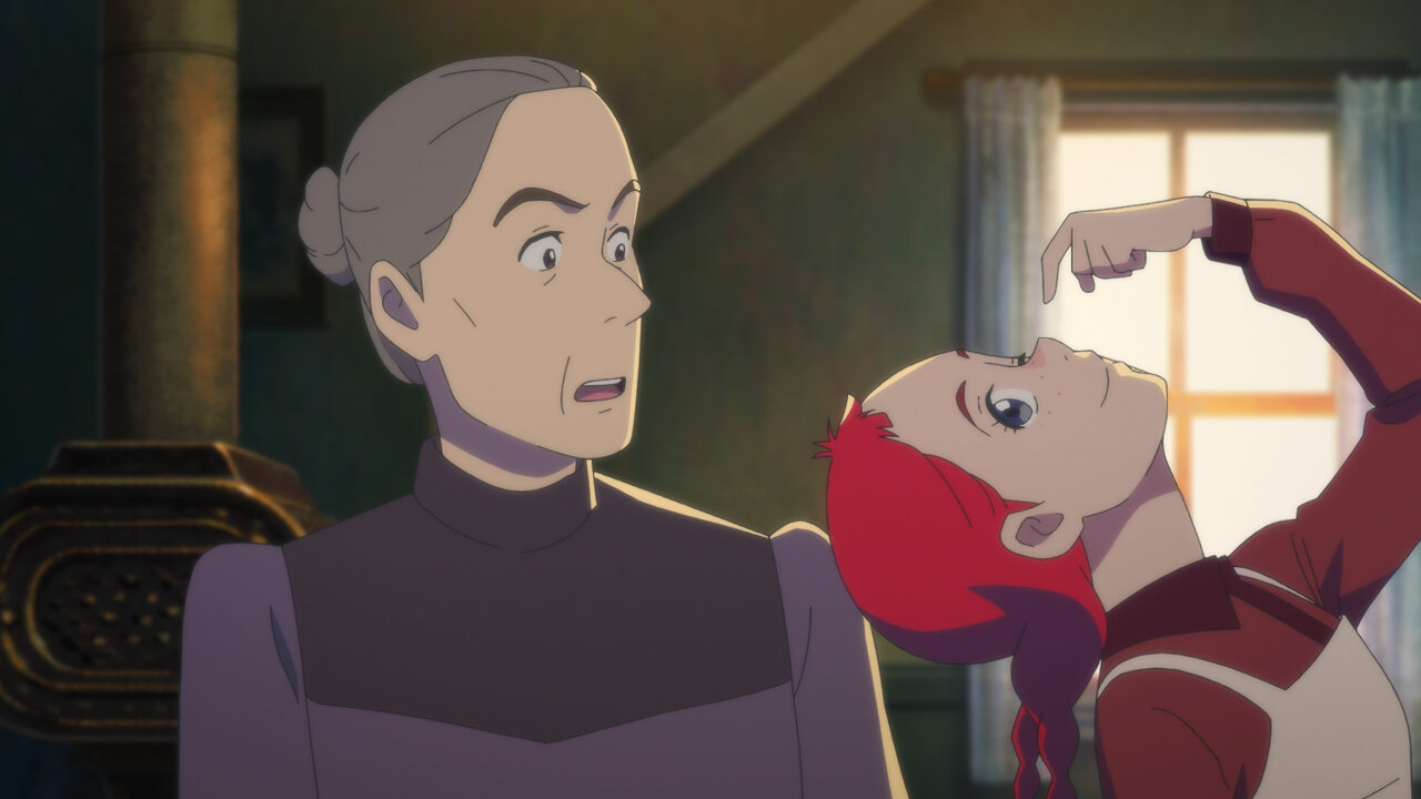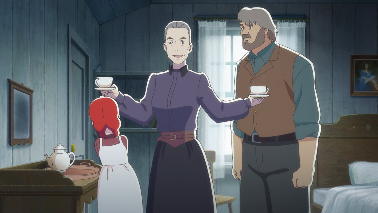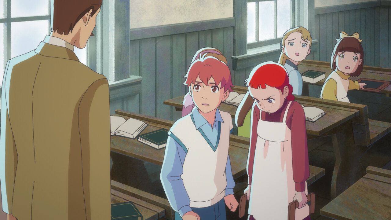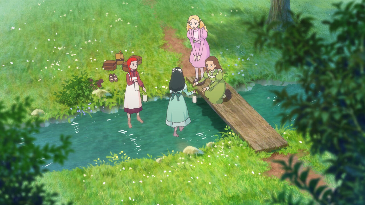 It must be ice cream week in anime. I found it funny that after yesterday’s Kusuriya no Hitorigoto featured ice cream, Anne gets her first taste of the frozen treat this week too. Anne has her red letter day at the picnic and makes new friends- not much to note here. The most important part of the episode comes last, when Anne starts school. She enjoys it at first- what’s not to love about it- friends, learning new things, getting out of the house. I was worried when they added in the scene with the girls giggling over lunch by the river- dancing awfully close to the “CGDCT” line- which was not at all the spirit of the book. Thankfully, it moved away from that, but it still gives me a small cause for concern in the future. Anne makes a splash, in a good way for the first time. While she’s behind a grade (not surprising given the scattered upbringing she’s had) she’s clearly a bright little girl, excelling in academics. She quickly makes it to the head of her class.