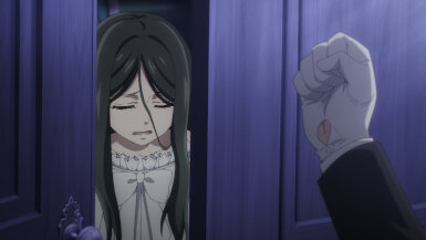 I like when we have these moments of vulnerability with Ciel, reminding us that though he’s experienced what he has by this age and has a contract with a demon butler, he is still a human child with fears and a desperation for safety. This is indeed quite the change in Ciel- the Ciel normally surrounded by adults and confidently commanding them at will, now recoiling in fear of all adults, clinging to the company of other children. This speaks a lot to the human psyche- you can put time and distance between past traumas, but they’re always going to be there in a dark corner of the heart, particularly if you push them aside and don’t deal with them. Ciel doesn’t really deal with them as such- he pushes on forwards to exact revenge against them, which is not the same as growing beyond them. The past haunting the present is very much a theme that pops up over and over throughout this series. Ciel, understandably, never reacts well when it rears its head, but this is the first time he’s outright rejected Sebastian.