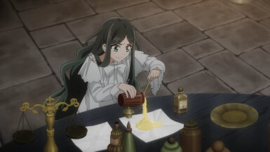 I love how despite the terribly grave situation, Sullivan still manages to turn the conversation sexual, pondering on carnal visits and Ciel’s preferences. Wolfram gets surprisingly pissed that Ciel and Sebastian visited the forest, forcing the werewolf to do its dirty work. I would’ve thought he would’ve been fine with the werewolf cursing the outsiders. This does get our Britishers dangerously closer to the truth of the miasma, so that they survived is certainly bad news in that respect. Although if they had died, that would have been equally bad news, given they are a secret envoy from the Queen. For now, the Emerald Castle is in a state of friction, though our little Emerald Witch is eating up the male attention.