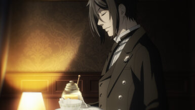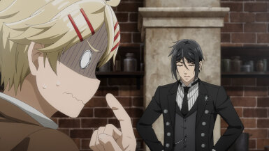It’s definitely an interesting turn of events, seeing Sebastian have to beg for something, coming face to face with his own limitations. Which, who knew demons had those? Sebastian vows to follow any order of Sullivan’s in payment for curing Ciel. That’s not something to be taken lightly, given where that child’s mind goes. Her request is surprisingly innocent, but wise on her part- have Sebastian teach her about the outside world and teach Wolfram how to be a better butler, something which seriously grates on Wolfram.
