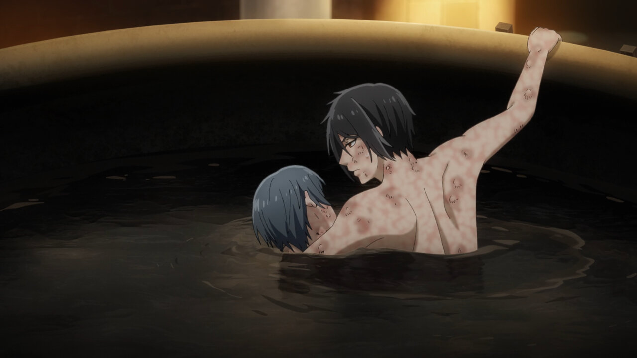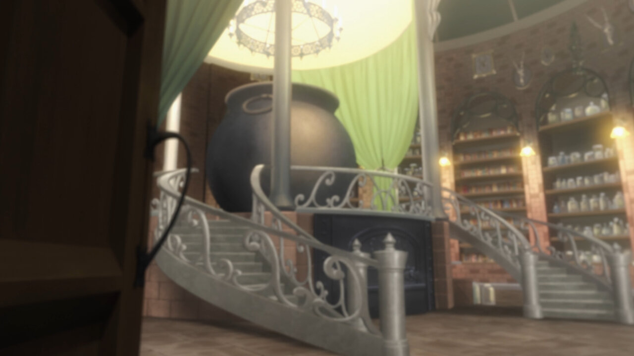 This puts the normally cool as a cucumber Sebastian into quite the panic, rousing Sullivan from her slumber for an emergency cure. I guess there are some things that are beyond Sebastian’s control. The treatment room put me strongly in mind of the Potions classroom in Harry Potter. Indeed, both Sebastian and Ciel have to take a dunk in the giant cauldron while Sullivan does her thing. I’m sure the sight that followed filled many a fan of a certain variety with glee. Sebastian and Ciel in a bath screams “doujin fodder”.