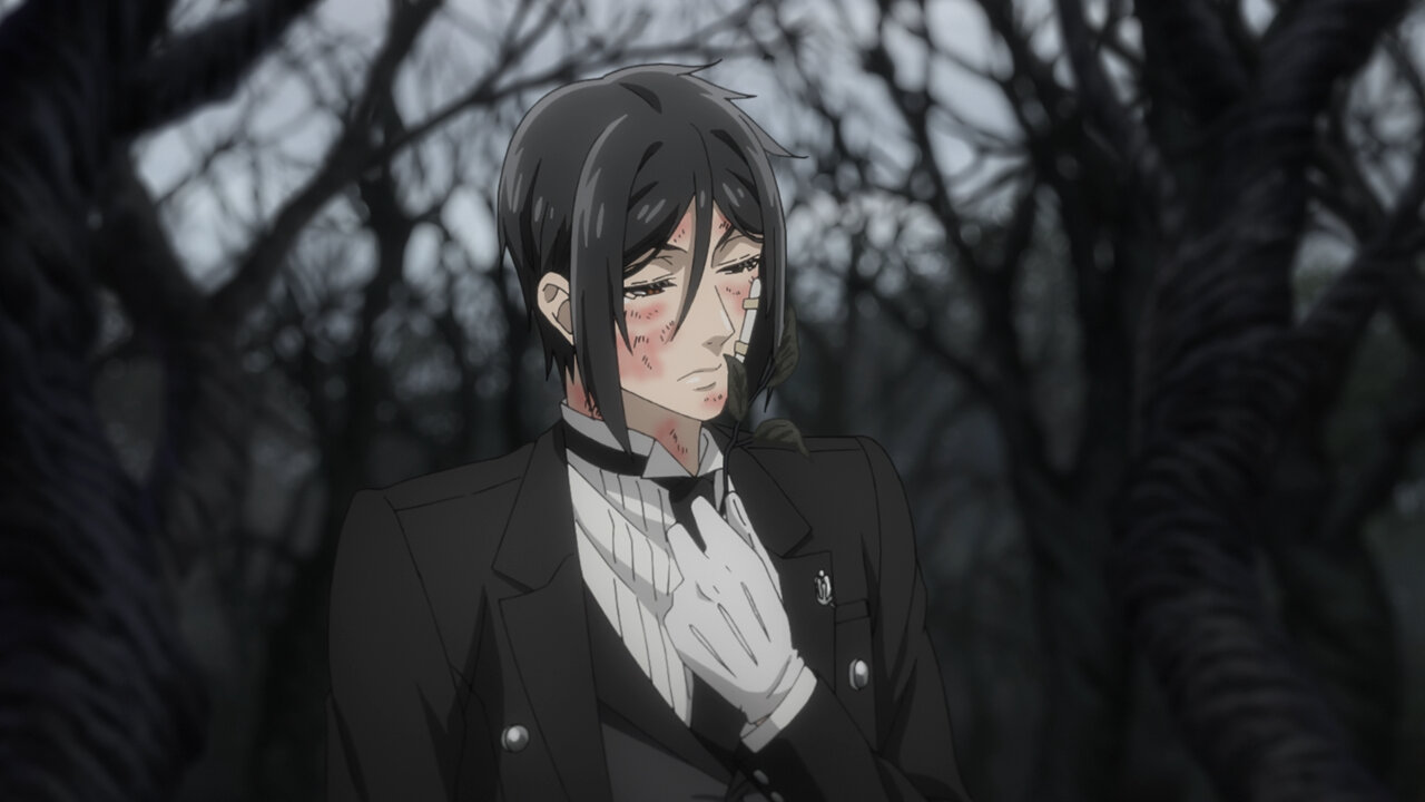 I like when we have these moments of vulnerability with Ciel, reminding us that though he’s experienced what he has by this age and has a contract with a demon butler, he is still a human child with fears and a desperation for safety. This is indeed quite the change in Ciel- the Ciel normally surrounded by adults and confidently commanding them at will, now recoiling in fear of all adults, clinging to the company of other children. This speaks a lot to the human psyche- you can put time and distance between past traumas, but they’re always going to be there in a dark corner of the heart, particularly if you push them aside and don’t deal with them. Ciel doesn’t really deal with them as such- he pushes on forwards to exact revenge against them, which is not the same as growing beyond them. The past haunting the present is very much a theme that pops up over and over throughout this series. Ciel, understandably, never reacts well when it rears its head, but this is the first time he’s outright rejected Sebastian.