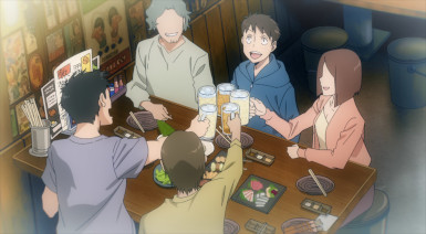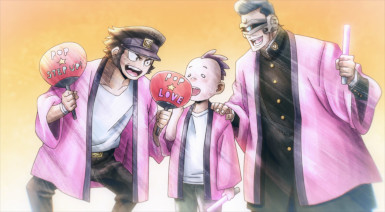 Soon they’re joined by another unfamiliar face – a rather plain one, belonging to a high-school girl. You know where this is headed. And it seems Pop and Knuckle have effectively started squatting in Kouichi’s hovel, even subdividing it between them. Naturally enough he has issues with this given he’s living on a conbini part-timer’s salary. But he doesn’t mind the company, it seems, so lonely has his life been up to this point. Pop heads off to a street gig and Koucihi to Family Family, leaving the hut in Knuckleduster’s culpable hands.