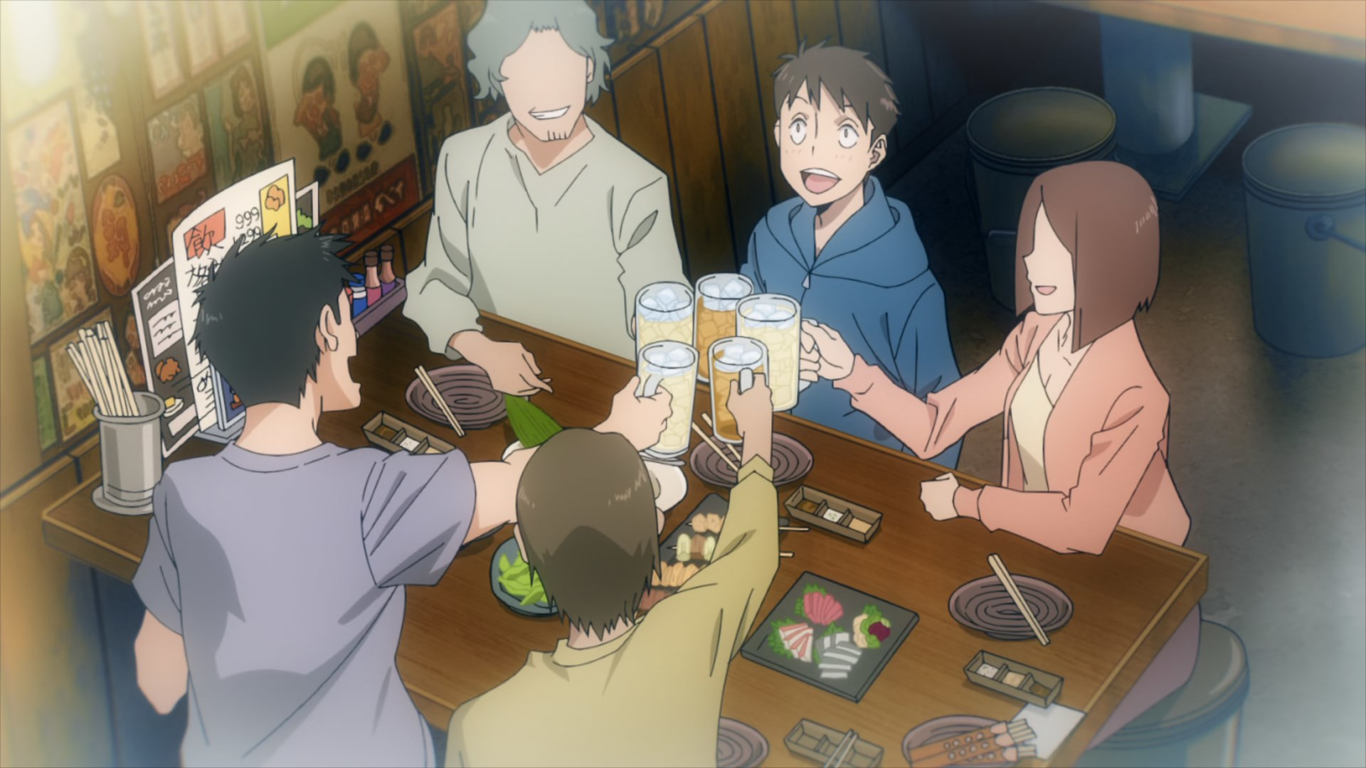 Soon they’re joined by another unfamiliar face – a rather plain one, belonging to a high-school girl. You know where this is headed. And it seems Pop and Knuckle have effectively started squatting in Kouichi’s hovel, even subdividing it between them. Naturally enough he has issues with this given he’s living on a conbini part-timer’s salary. But he doesn’t mind the company, it seems, so lonely has his life been up to this point. Pop heads off to a street gig and Koucihi to Family Family, leaving the hut in Knuckleduster’s culpable hands.
