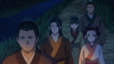 In order to save Shisui, Mao Mao begrudgingly goes along, where she and Shisui are disguised as villagers sold into slavery. A side note, but I found it interesting that her captors chose an outfit in Mao Mao’s signature green color scheme.