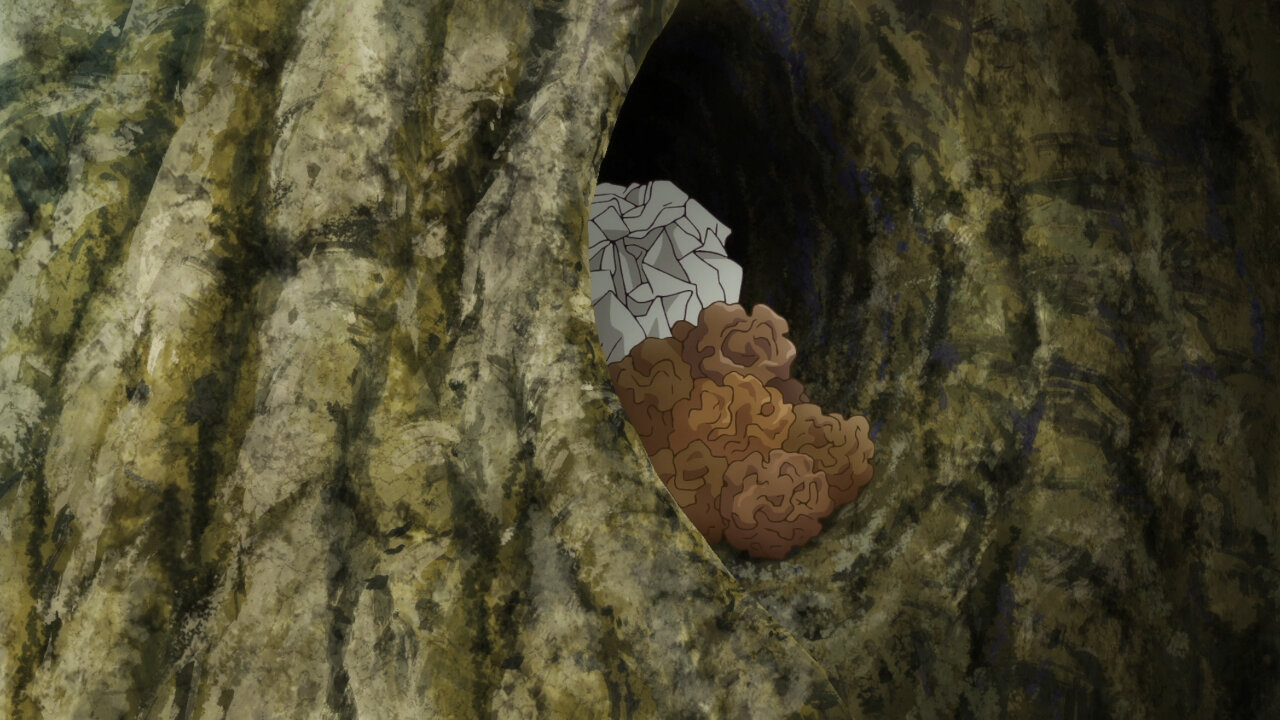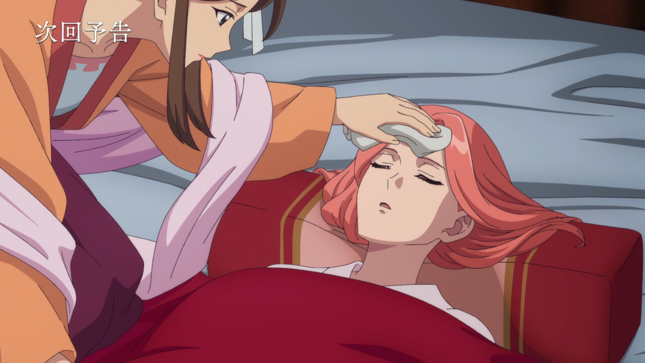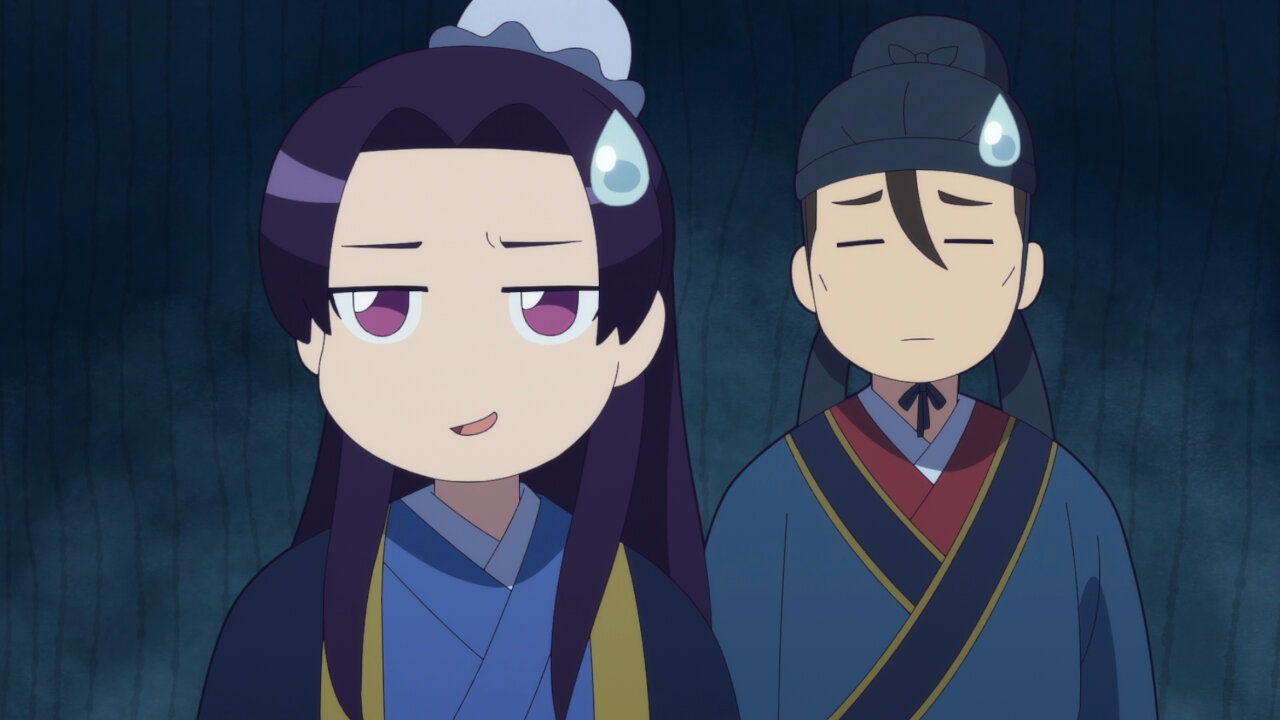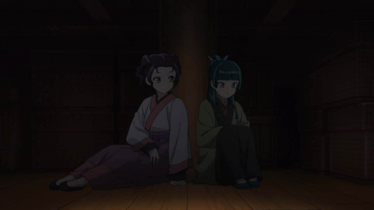 I kind of suspected last week that Shisui was involved in this plot, given how extremely convenient it was that she just so happened to show up when she did. Those suspicions proved to be accurate. What I didn’t see coming was that Shisui and Suirei are actually sisters. Though I should have picked up on the connection, given that they both have “jade” in their name. Mao Mao susses them out, throwing a snake in their path to see the reaction- apparently Suirei and Indiana Jones have one thing in common. Shisui comforting Suiren is the (un)dead giveaway.