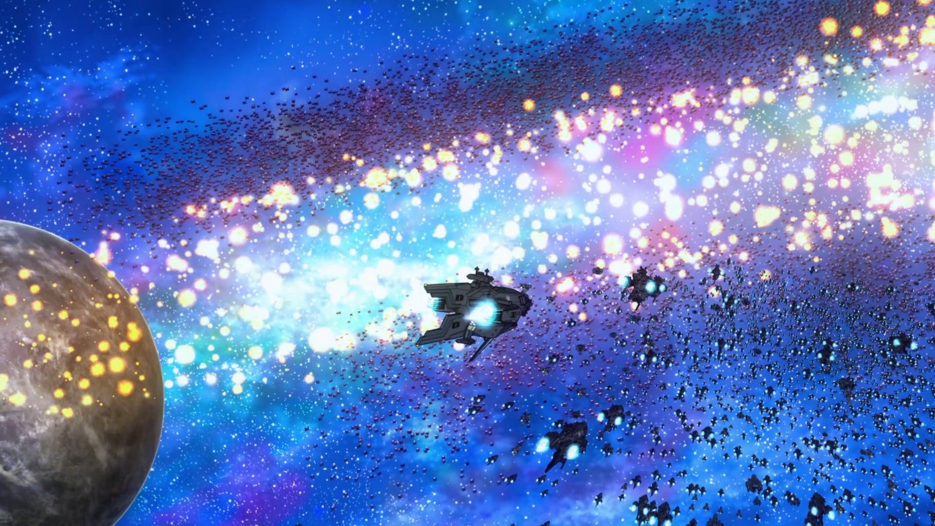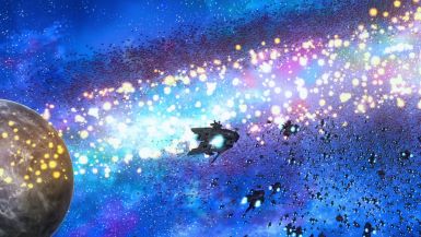 Liam charges toward Goaz’s ship while Amagi’s full fleet pummels the pirate shields. Goaz, a coward in shiny armor, tries to run, but Liam casually destroys his engines. Then, something strange happens: time bends, the glowing dog returns (full picture!), and Liam is guided to a treasure room and an antique katana.