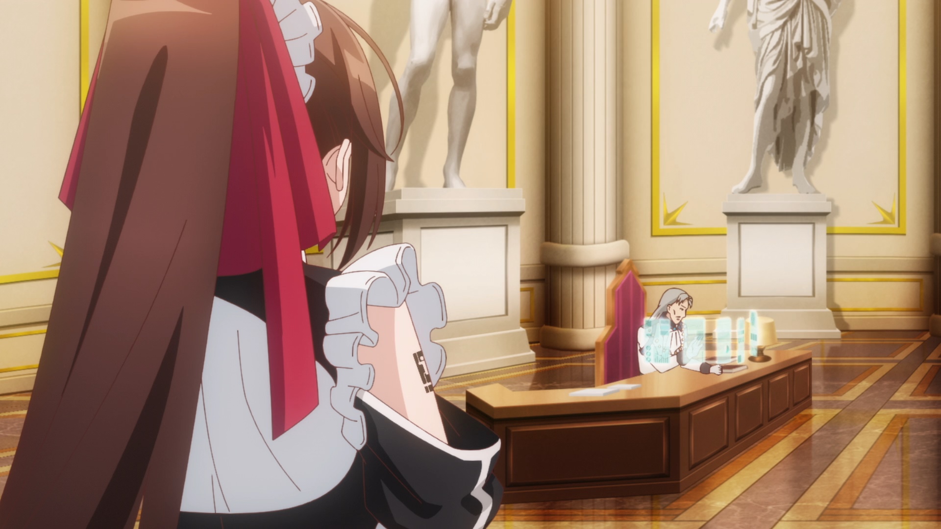 Guide, of course, fuels this with malevolent joy. But too bad—Amagi overhears everything (thanks to shiny puppy), and with the grace of a queen and the might of a corporate shark, she handles it. The Chancellor sides with Liam. The family’s screwed.